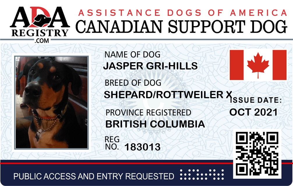 Emotional Support Dog Registration for Jasper Gri-Hills
