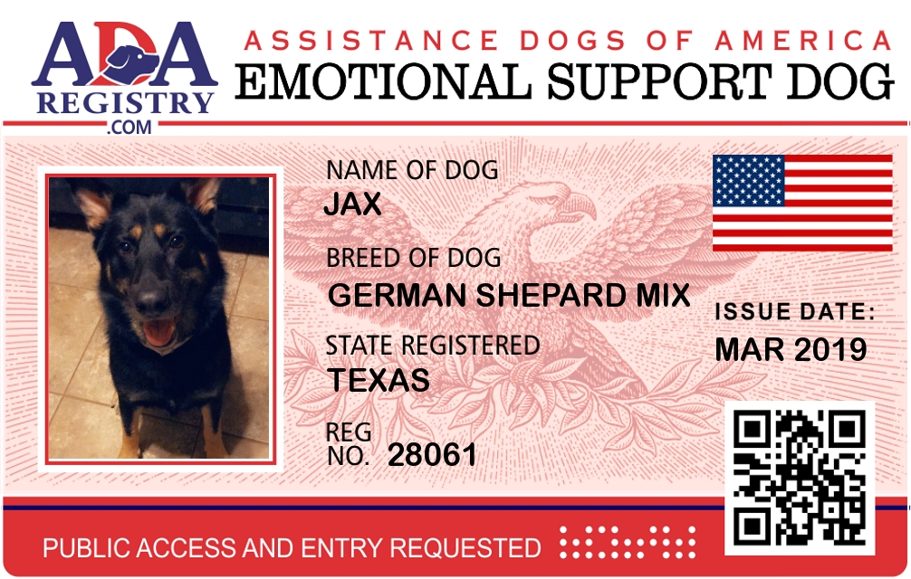 Emotional Support Dog Registration for Jax
