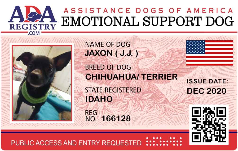 Emotional Support Dog Registration for Jaxon ( J.J. )