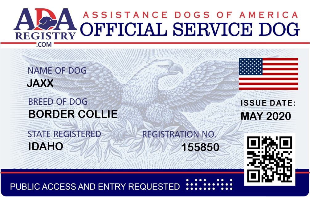Service Dog Registration for Jaxx