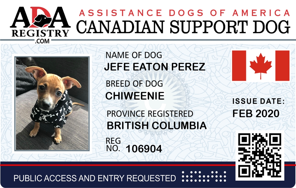 Emotional Support Dog Registration for Jefe Eaton Perez
