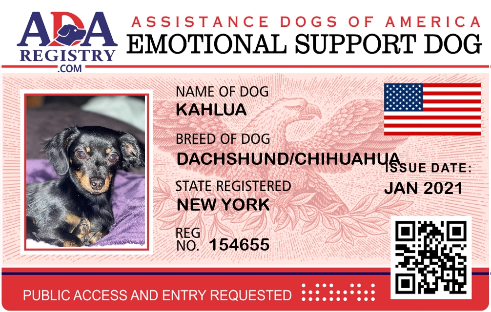Emotional Support Dog Registration for Kahlua