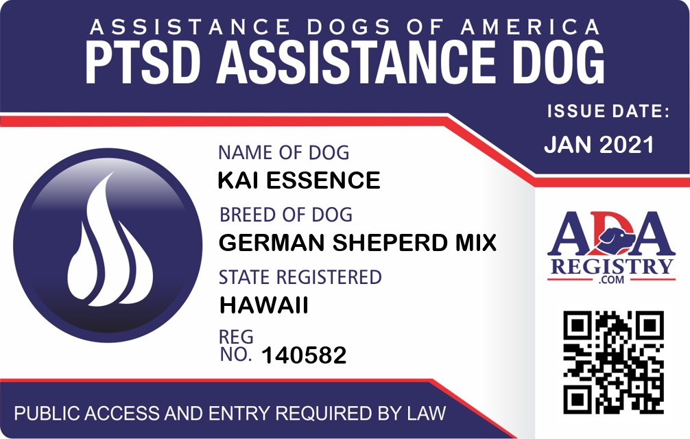PTSD Assistance Dog Registration for Kai Essence
