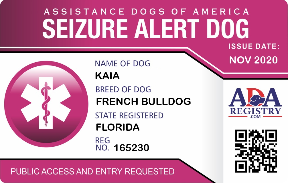 Seizure Assistance Dog Registration for KAIA