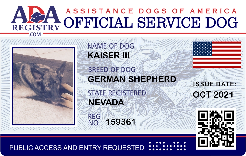 Member Since Jul 2020 Kaiser III is my service dog helping me through my days and nights. Grocery stores are where we go most of the time. He is close by when he senses my need.
