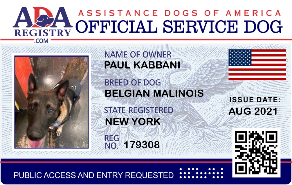 Service Dog Registration for Kaiser Kabbani