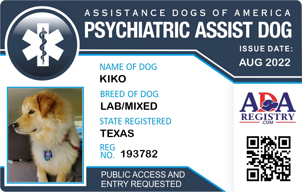Psychiatric Service Dog Registration for Kiko