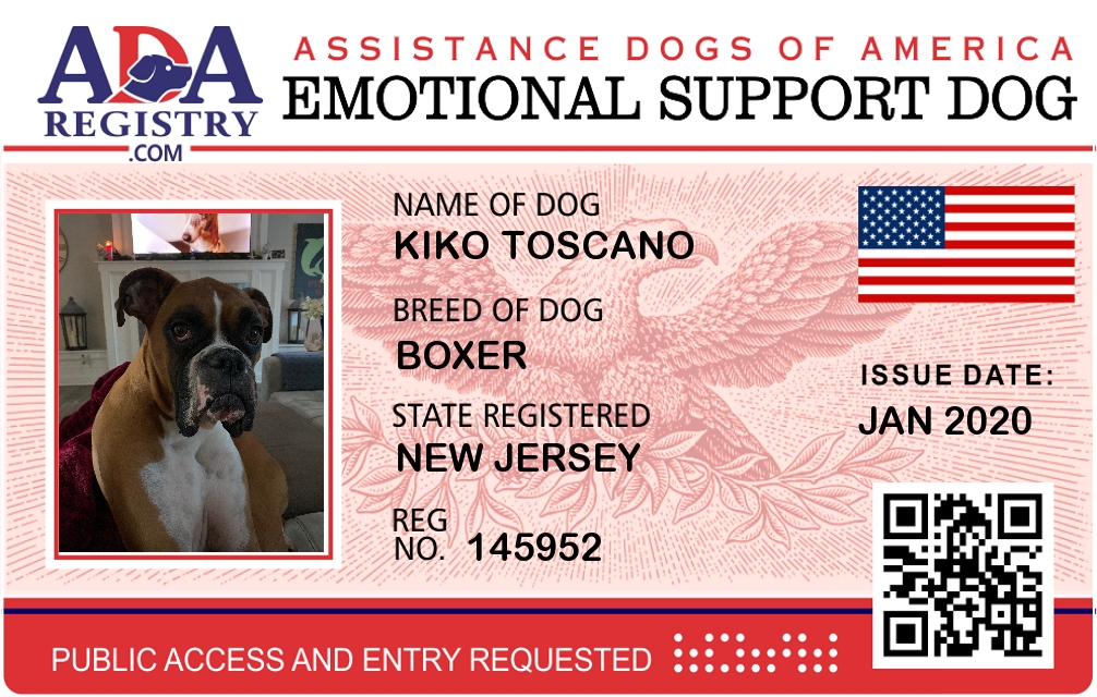 Emotional Support Dog Registration for Kiko Toscano
