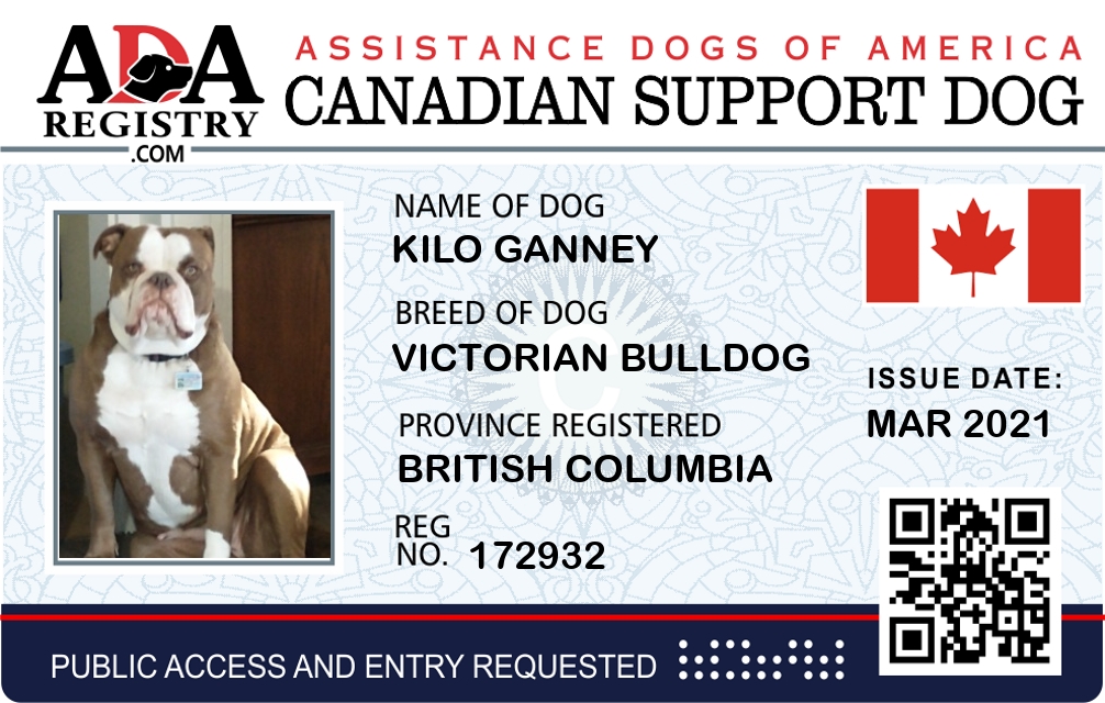 Emotional Support Dog Registration for Kilo Ganney