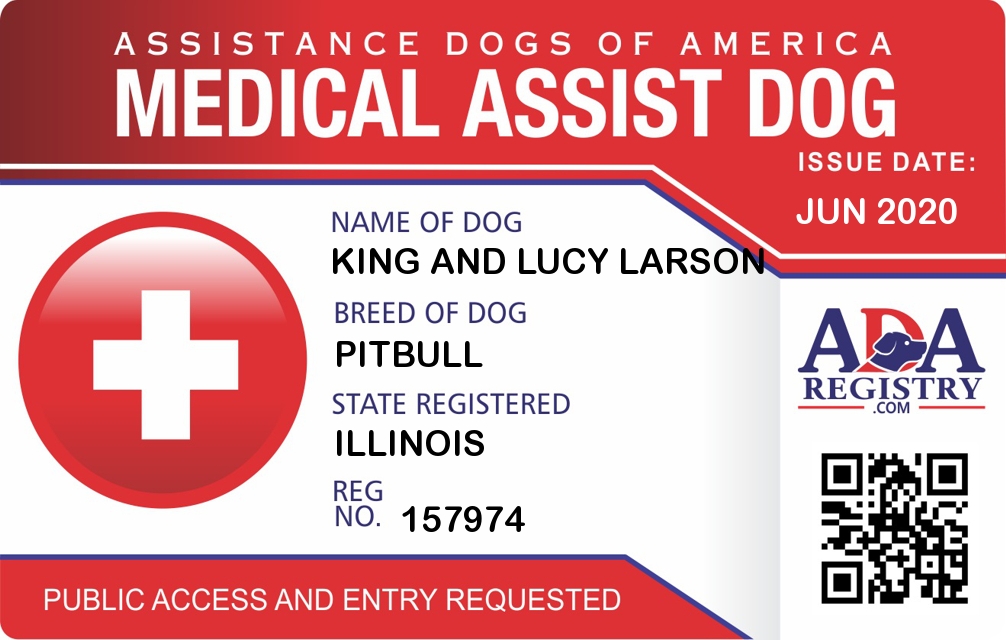 Medical Assistance Dog Registration for King and Lucy Larson