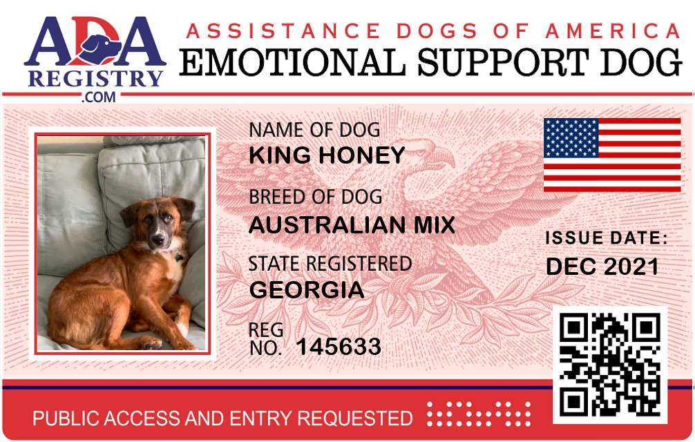 Emotional Support Dog Registration for King Honey