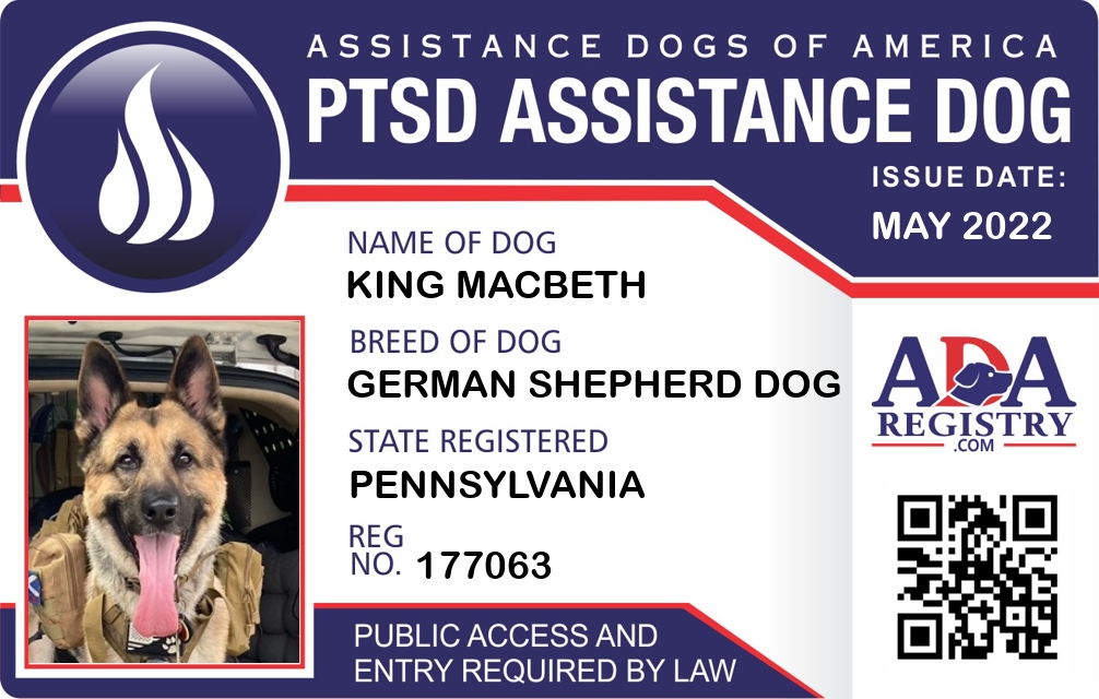PTSD Assistance Dog Registration for King Macbeth