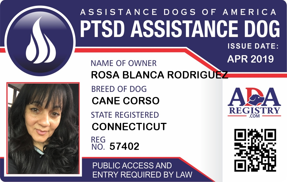 PTSD Assistance Dog Registration for King Rodriguez