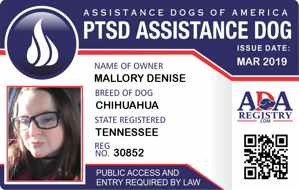 Registration Type: PTSD Assistance Dog Registration