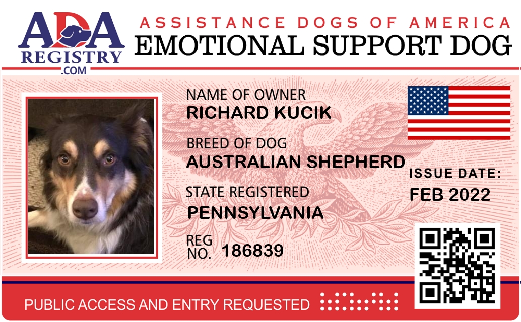 Emotional Support Dog Registration for Kirby Levi Foster