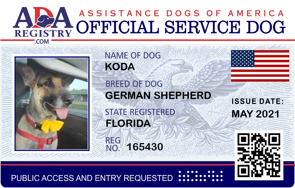 Service Dog Registration for Koda
