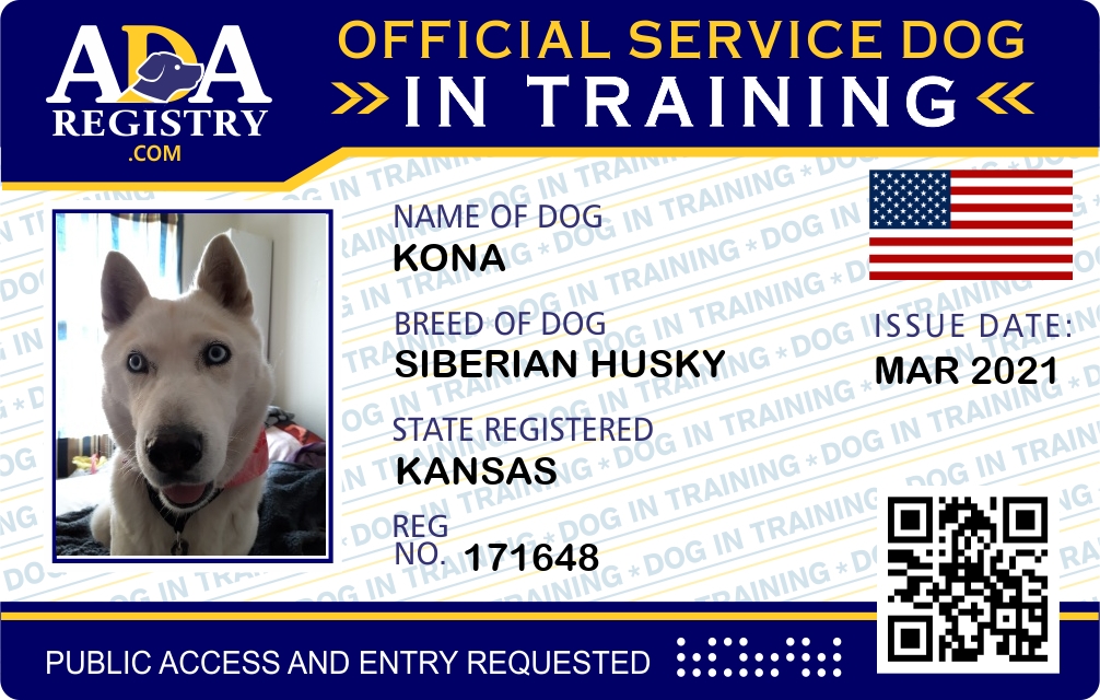 Service Dog In Training Registration for Kona