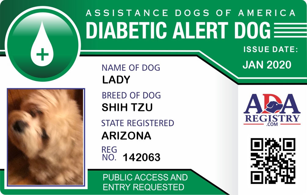 Diabetic Alert Dog Registration for lady