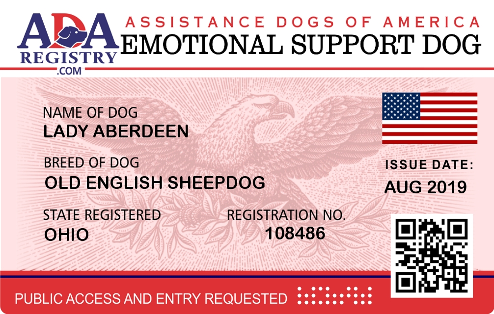 Emotional Support Dog Registration for Lady Aberdeen