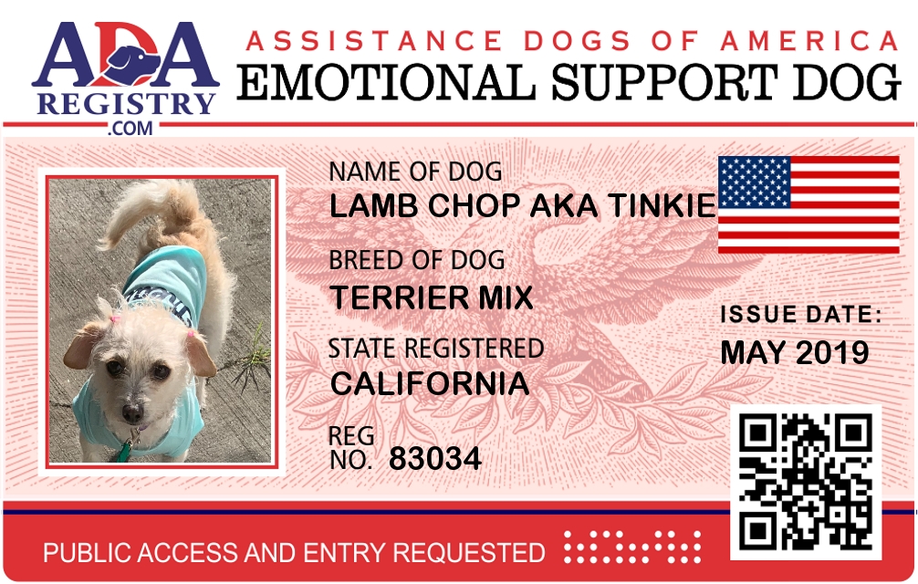 Emotional Support Dog Registration for Lamb chop aka tinkie