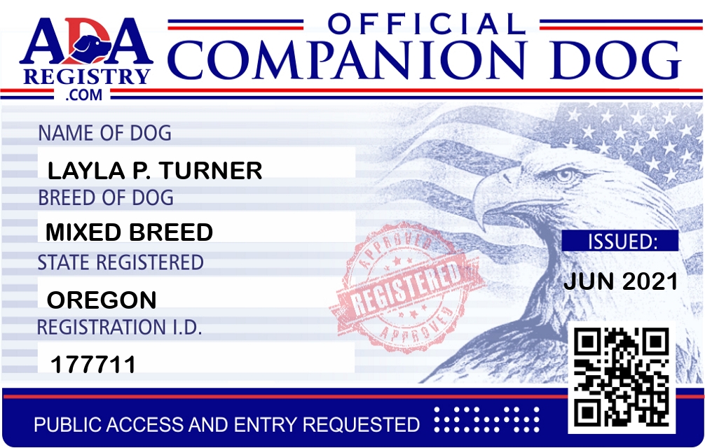 Companion Dog Registration for Layla P. Turner