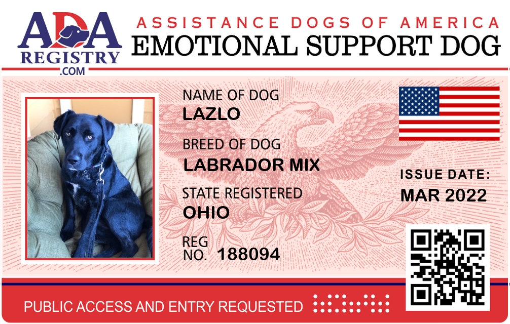 Emotional Support Dog Registration for Lazlo