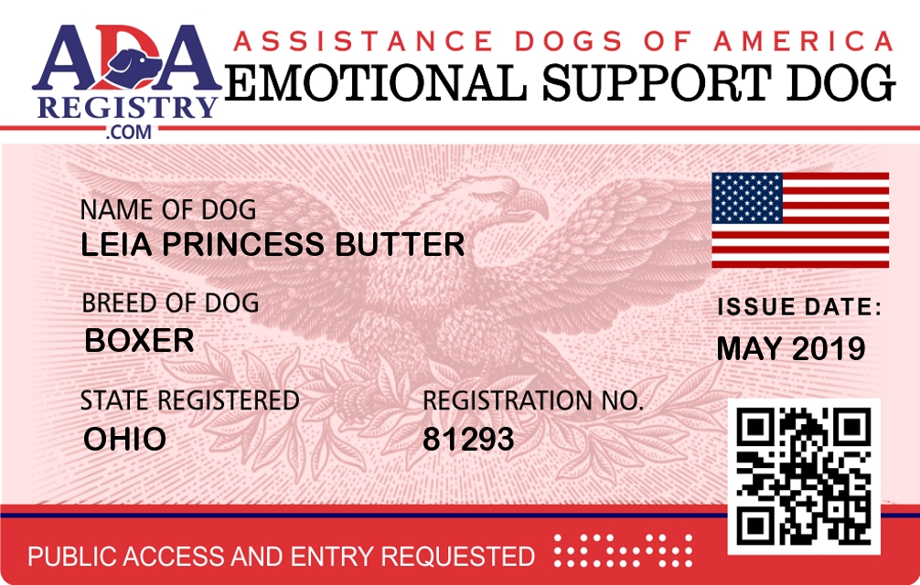 Emotional Support Dog Registration for Leia Princess Butter