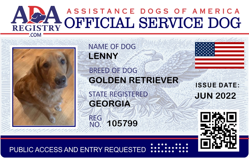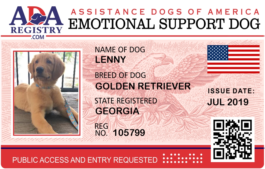 Emotional Support Dog Registration for Lenny