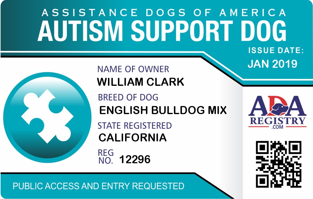 Autism Assistance Dog Registration for Lexi Blue Clark