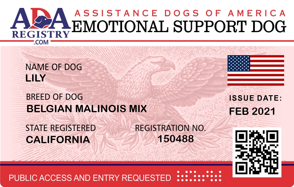 Member Since Feb 2020 This is lily she’s a malinois mix of some sort and she is my emotional support animal. I registered her after the loss of my fiancé.