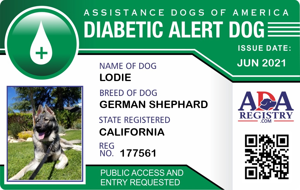 Diabetic Alert Dog Registration for Lodie