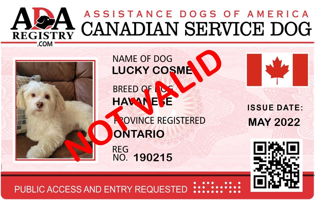 Service Dog Registration for Lucky Cosme