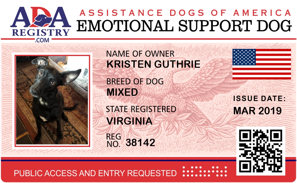 Emotional Support Dog Registration for Lucky Enos