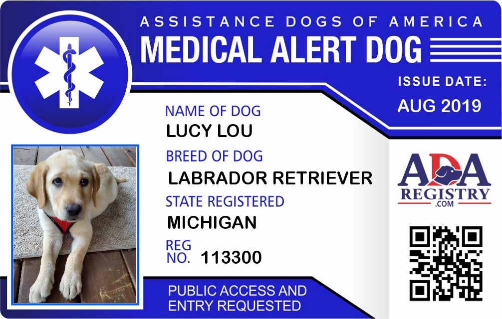 Medical Alert Dog Registration for Lucy Lou