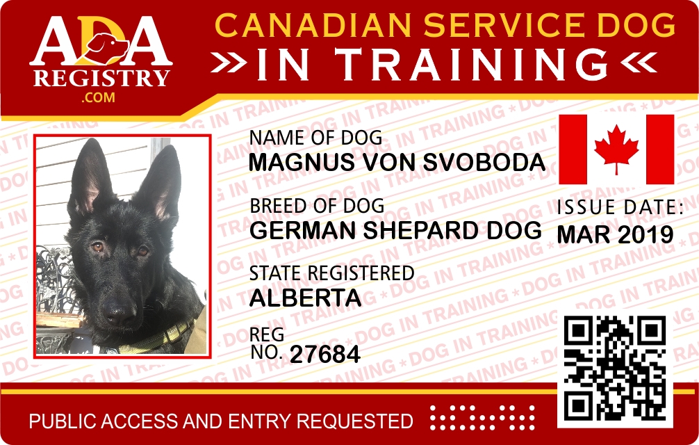 Service Dog Registration for Magnus Von Svoboda