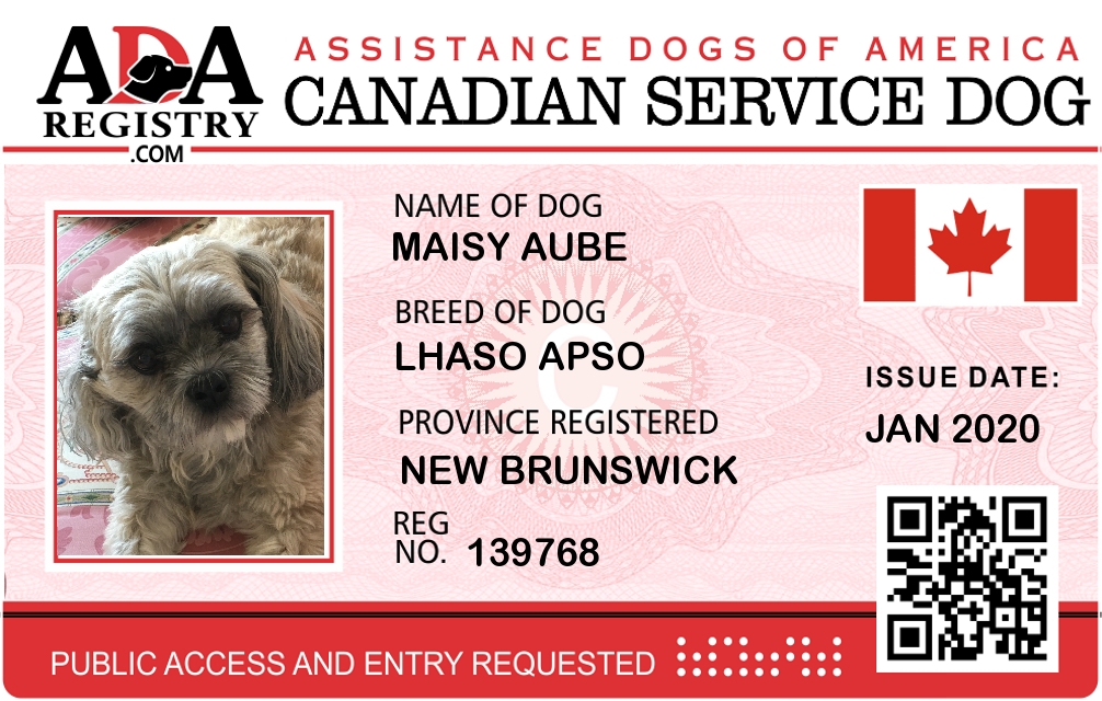 Service Dog Registration for Maisy Aube
