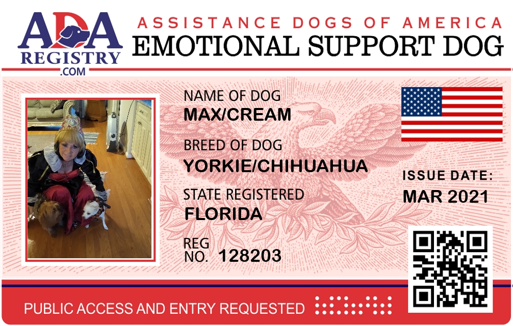 Emotional Support Dog Registration for Max/Cream