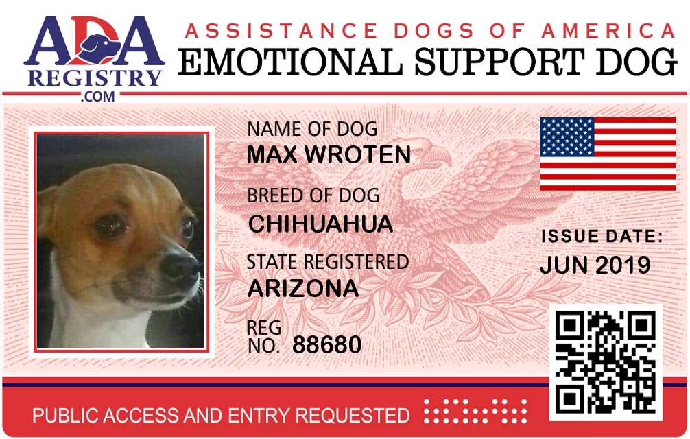 Emotional Support Dog Registration for Max Wroten