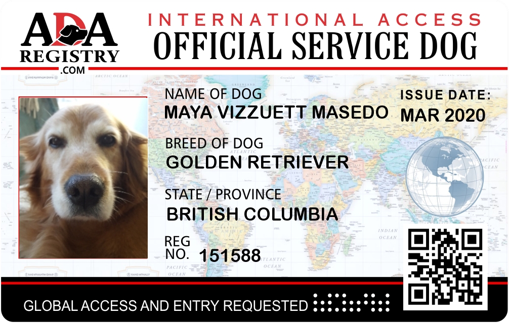 International Service Dog Registration for Maya Vizzuett Masedo