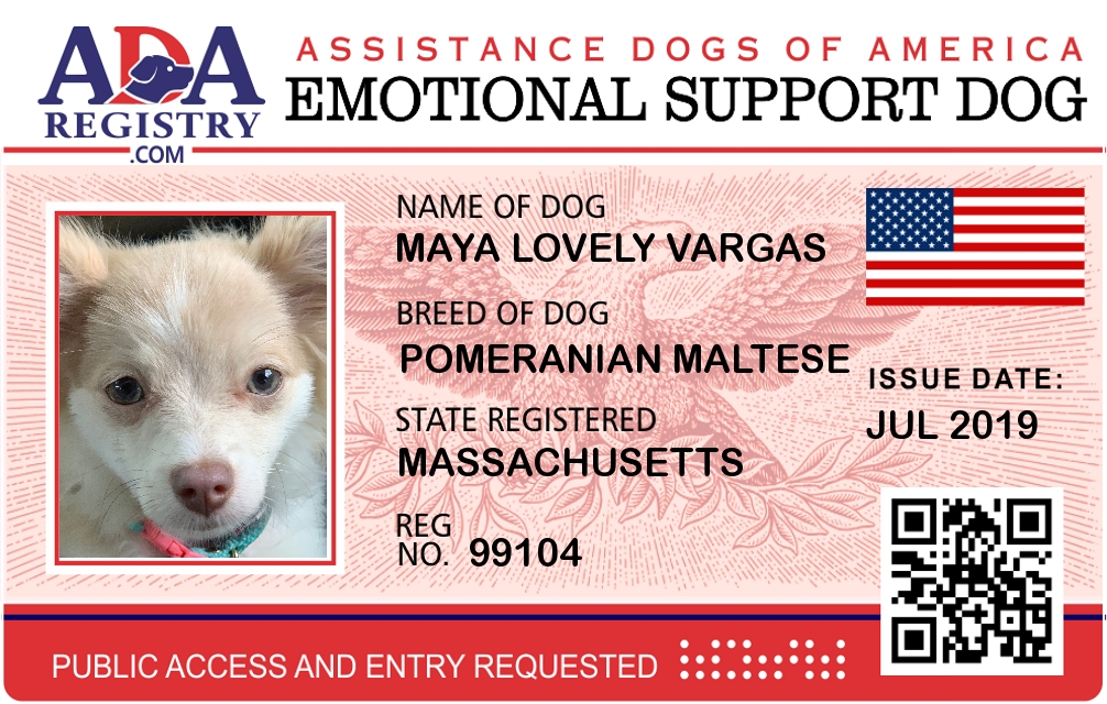 Emotional Support Dog Registration for Maya Lovely Vargas