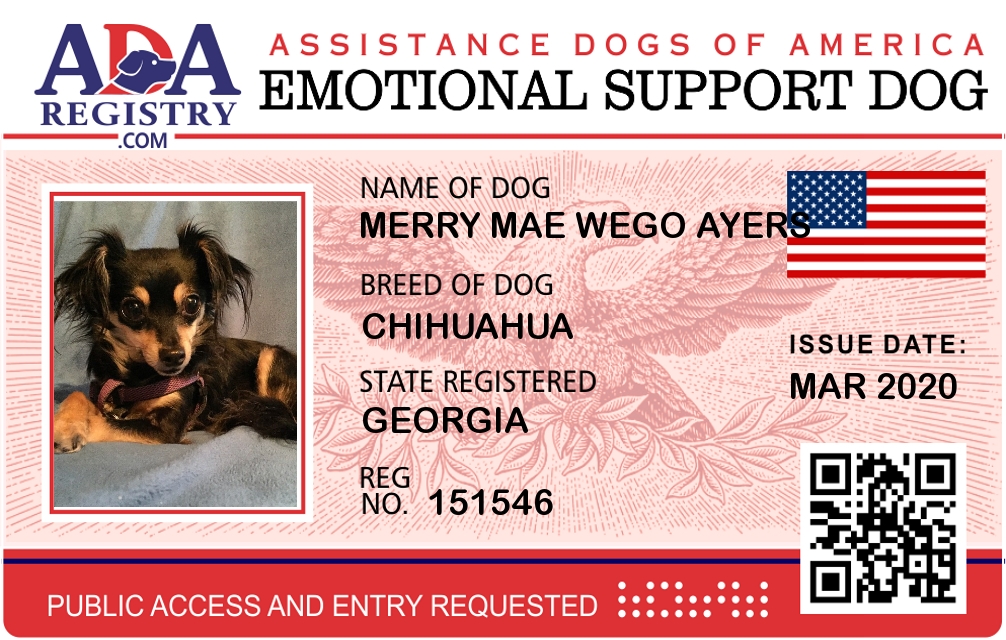 Emotional Support Dog Registration for Merry Mae Wego Ayers