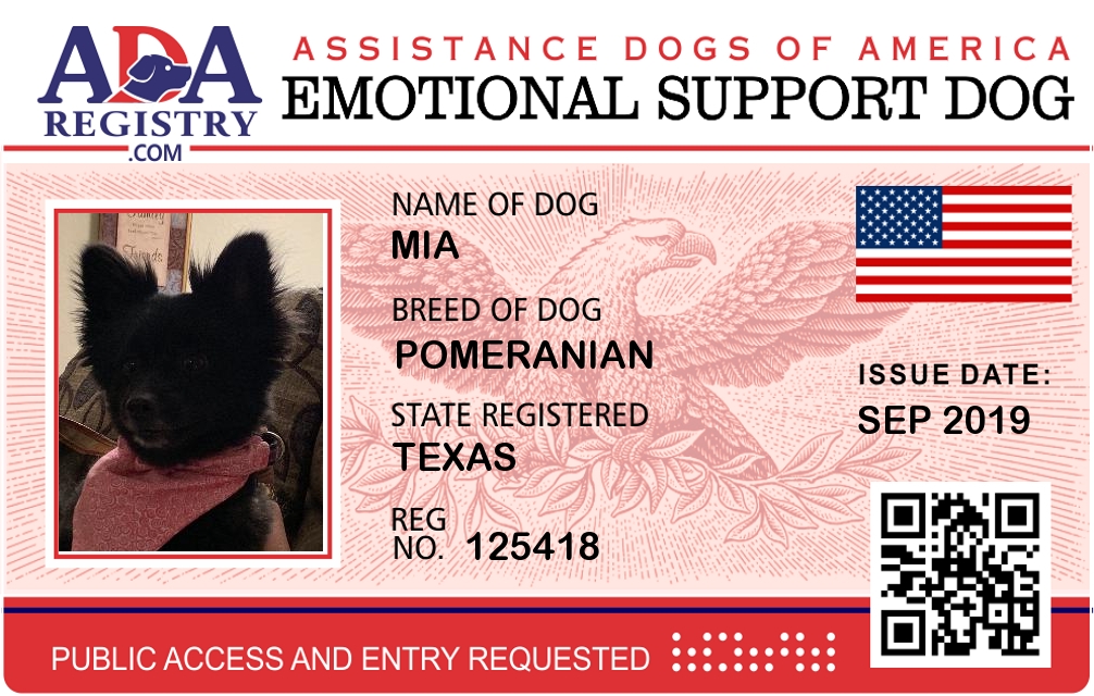 Emotional Support Dog Registration for Mia