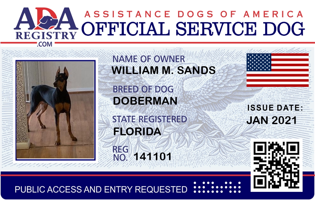 Service Dog Registration for Mia Sands