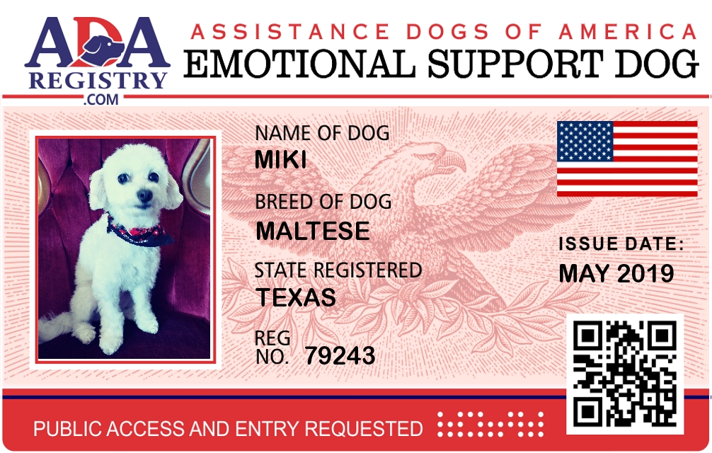 Emotional Support Dog Registration for Miki