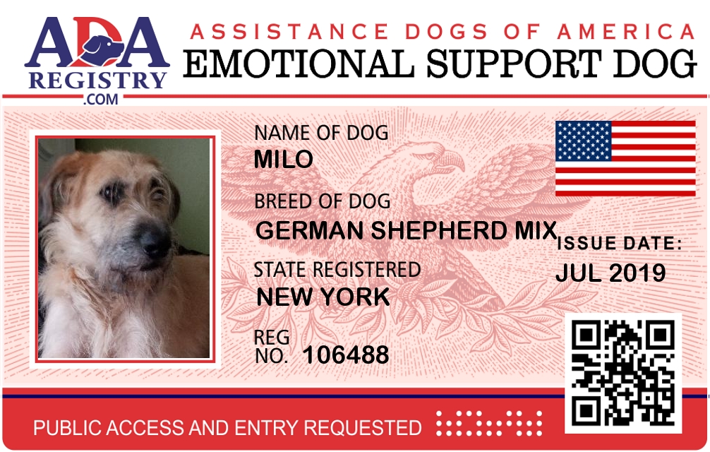 Emotional Support Dog Registration for Milo