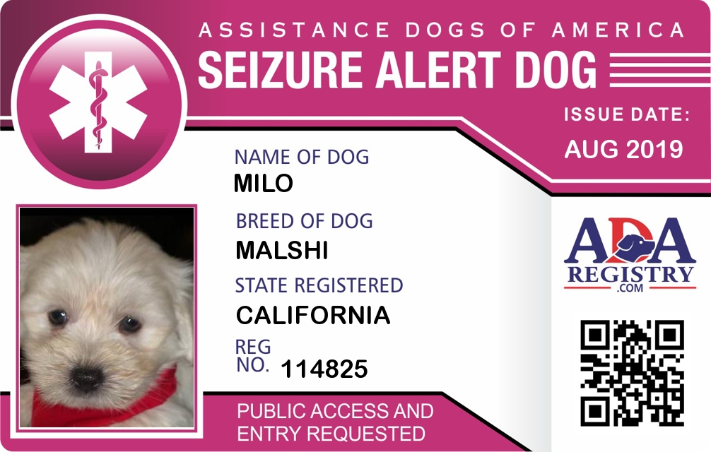 Seizure Assistance Dog Registration for Milo