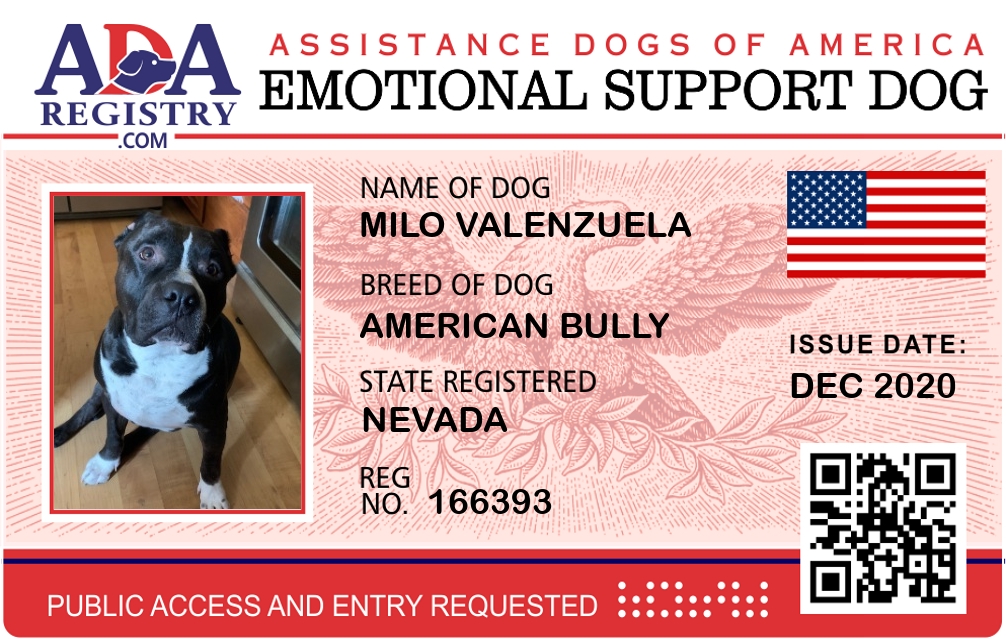 Emotional Support Dog Registration for Milo Valenzuela