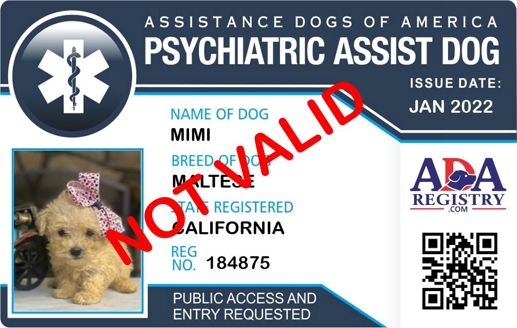 Psychiatric Service Dog Registration for Mimi