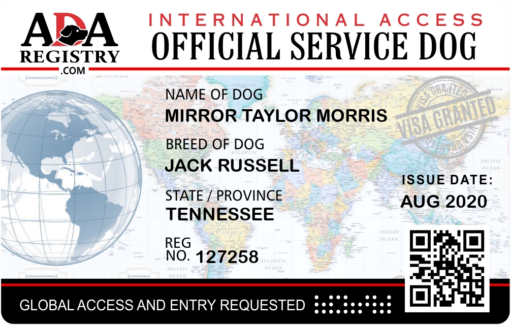International Service Dog Registration for Mirror Taylor Morris