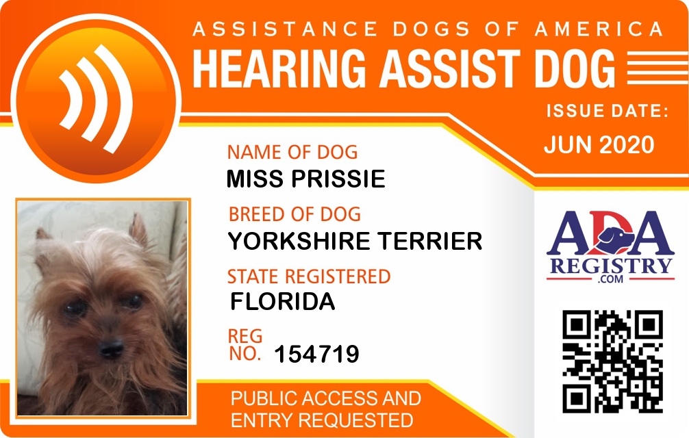 Hearing Assistance Dog Registration for Miss Prissie